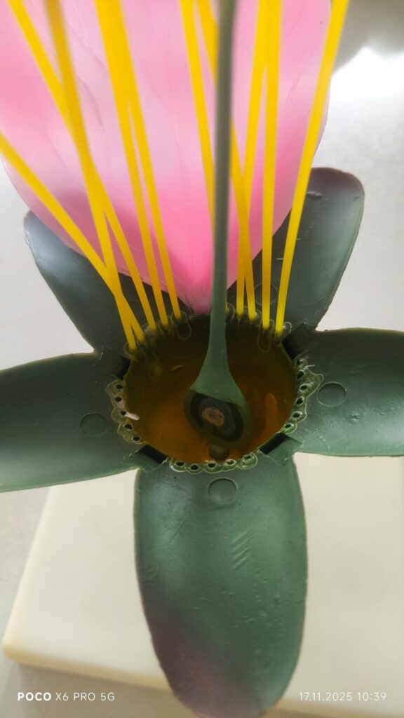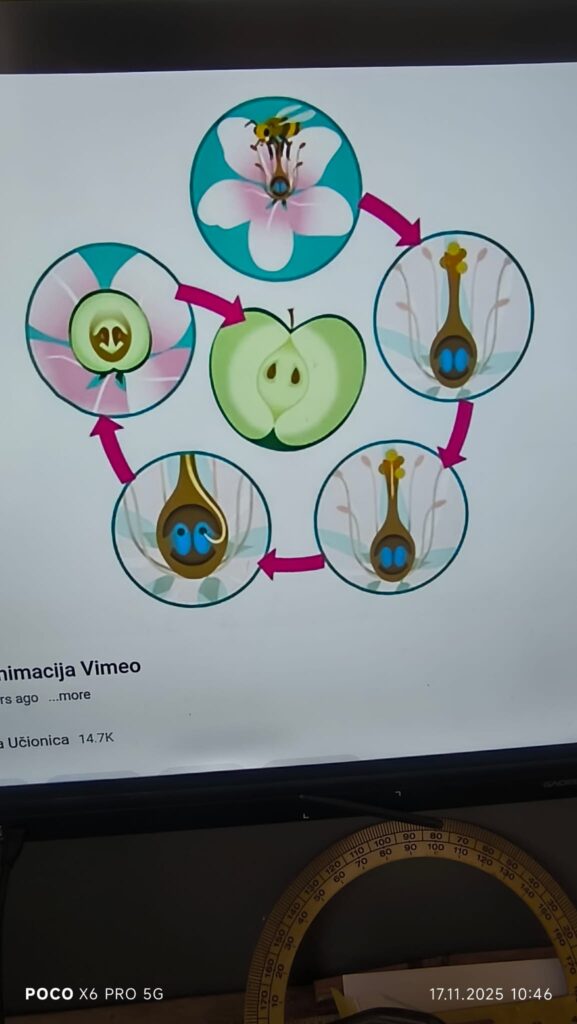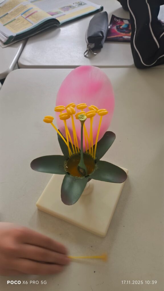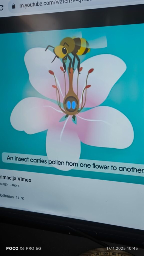 Преку кратка анимација беше прикажан процесот на опрашување. Учениците активно учествуваа во составување и разгледување на моделот, со што го утврдија знаењето за деловите и нивната функција.